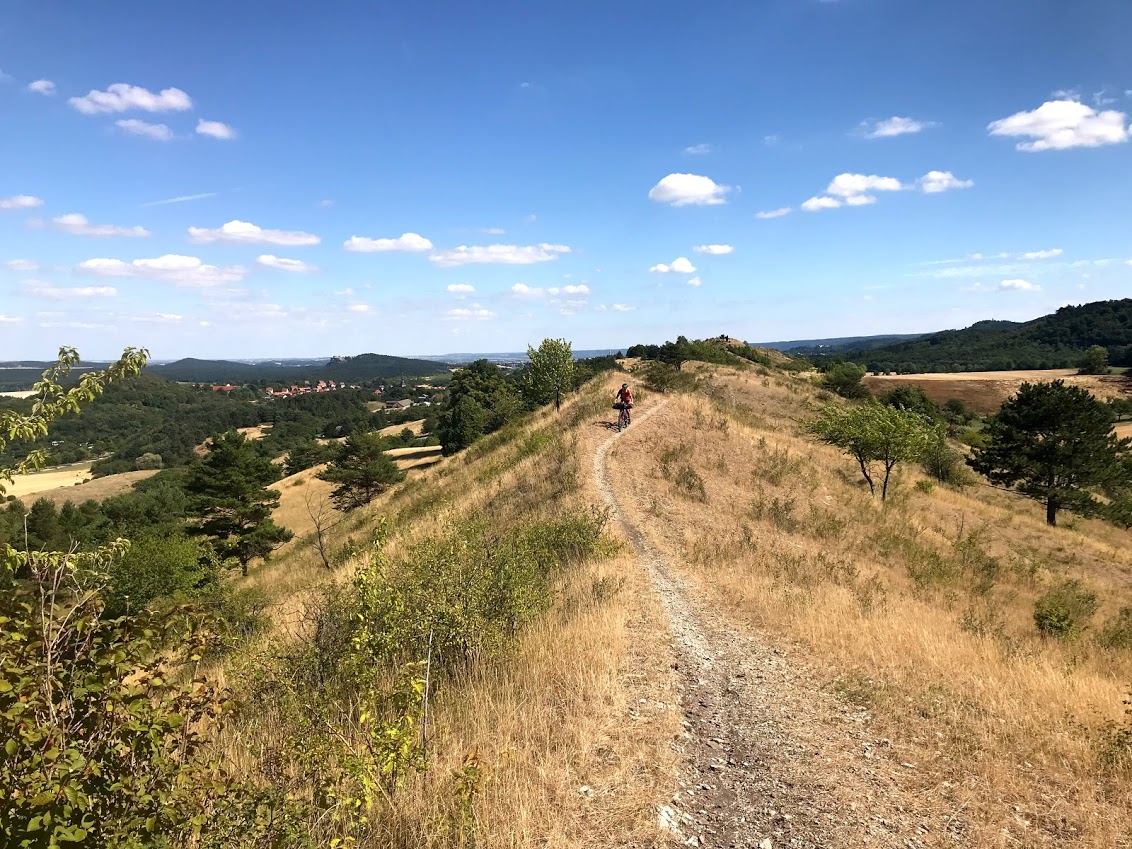 Nach der Party am Abend zuvor, waren wir alle am nächsten Morgen etwas müde und so genossen wir zunächst die langen Abfahrten. Nach einem willkommenen Kaffee waren wir dann auch alle etwas wacher und bereit für ein paar technische Trails nach Hardburg. Hier überraschte eine gepflegte Altstadt mit Schloss, alter Mühle und Fachwerk, bevor es über den Panoramaweg weiter zum Klosterfischer ging. Ab und zu naschten wir uns durch die reifen Him- und Brombeeren am Wegesrand.