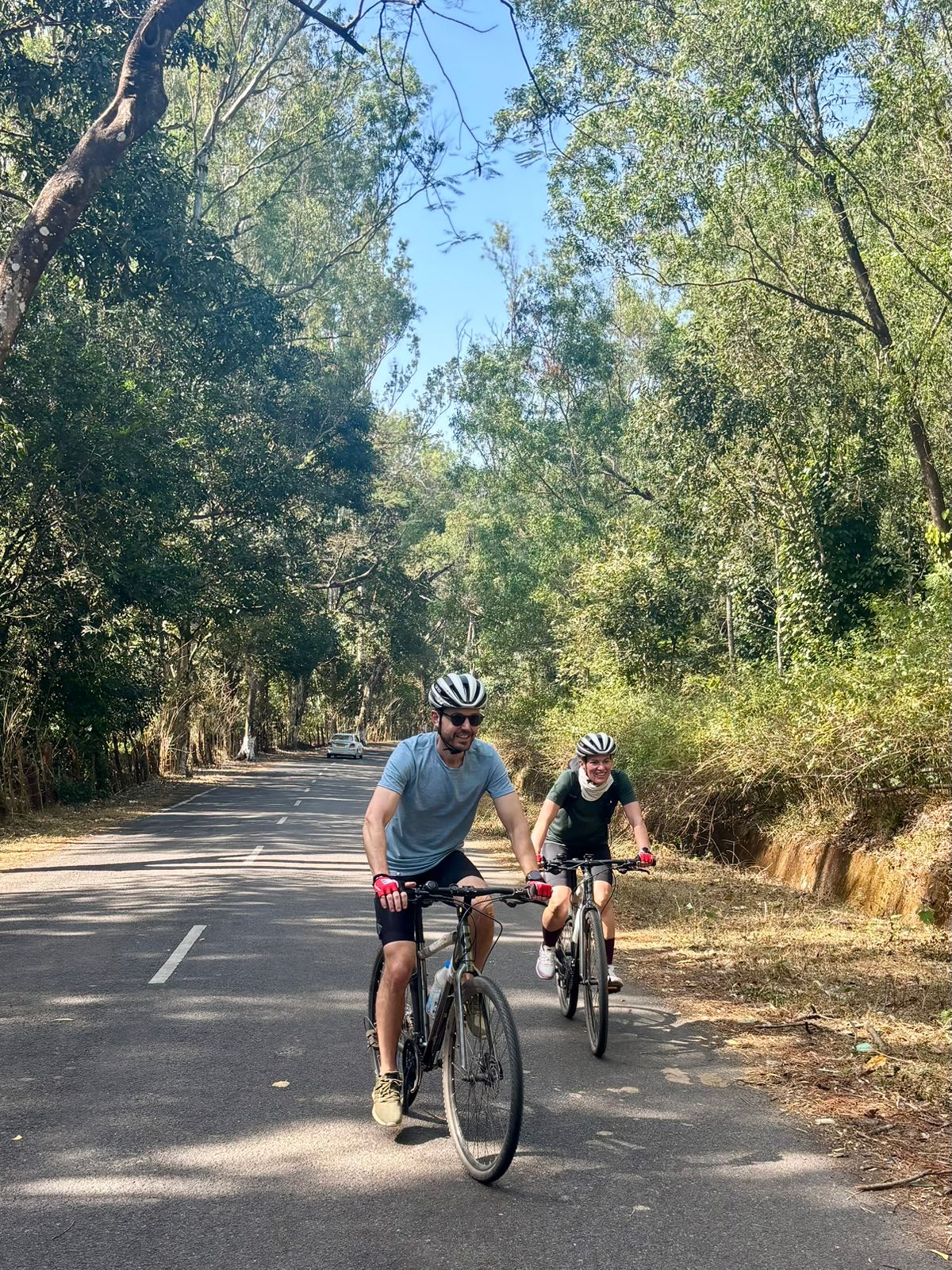 Wir fahren auf ruhigen Straßen durch dichte, schattige Wälder und gewinnen langsam an Höhe in den Eastern Ghats.