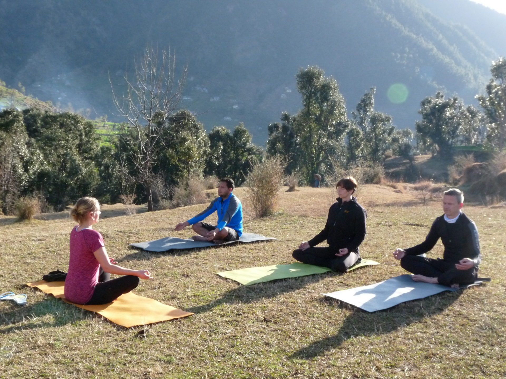Zweimal täglich machten wir Yoga. Die Praxis in der freien Natur inmitten der Bergwelt Indiens ist etwas ganz besonderes! Die Stunden waren ganz den Wünschen unserer Gäste angepasst und bestanden aus Meditation, Asana-Praxis, Pranayama und Mantra Chanten!
